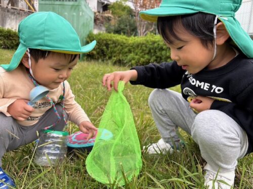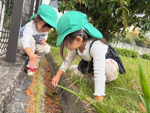 地面に落ちているキンモクセイの花を集めたりして楽しんで遊んでいましたよ![]()