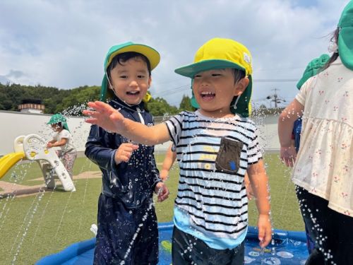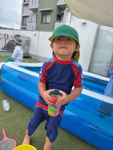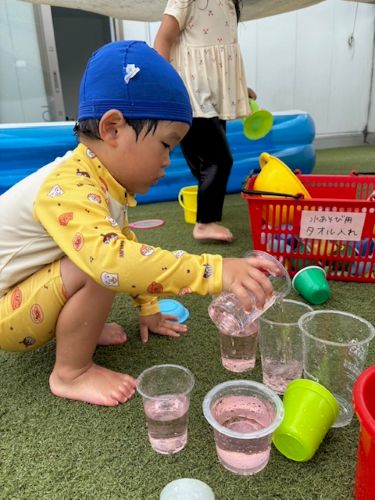 水遊びの後は、お店屋さんごっこをしていた幼児クラスへ少しだけ遊びに行ってみました🍧目を輝かせる姿が見られました