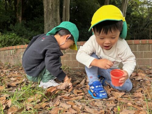 そしてもちろんどんぐり拾い♩最近まで緑色だったドングリが少しずつ茶色の変化してきました![]()