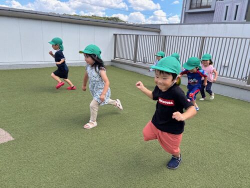 誕生会のあとは、水遊び♩水遊びをする前には「よーいどん!」とみんなでかけっこをして遊びました![]()