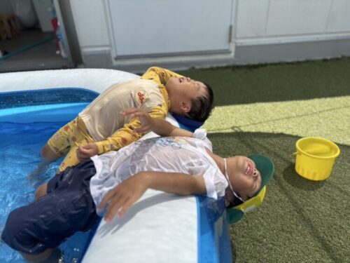 誕生日会の後は屋上でプール遊び💦お水をバシャバシャにこにこ笑顔😊