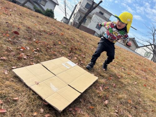 また、滑って行ってしまう段ボールを「待てー!」と追いかけることも遊びになっていました♩