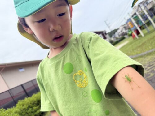 みんなで見つけたバッタが腕に登ってきました❗️