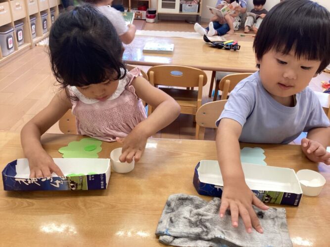製作コーナーは、ノリを使ってシャインマスカット作り🍇