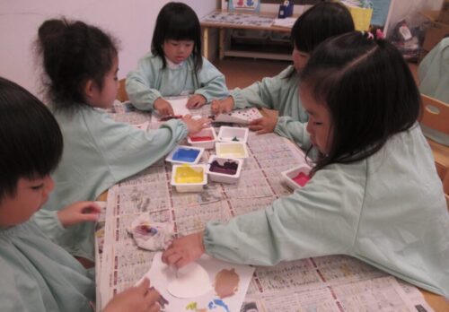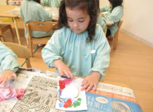 製作では絵の具を使って指でスタンピング☝️🎨
