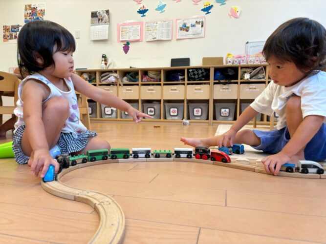 こちら、汽車で遊ぶお友達🚂