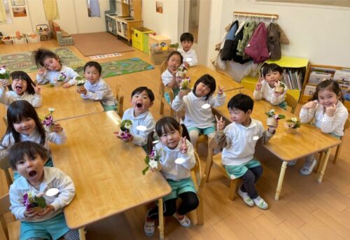 ぱんだ組最後のフラワーアートでしたが、花の名前を復唱して覚えてくれたり一年でどんどん成長したみんなでしたよ![]()