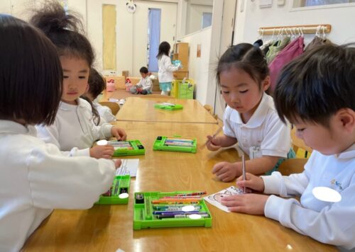 室内遊びの中でチームの名前を決め、友だちと一緒に色を塗りました🎨