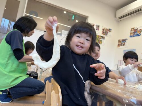 みんなとっても興味津々で粘土遊びをしていましたよ![]()