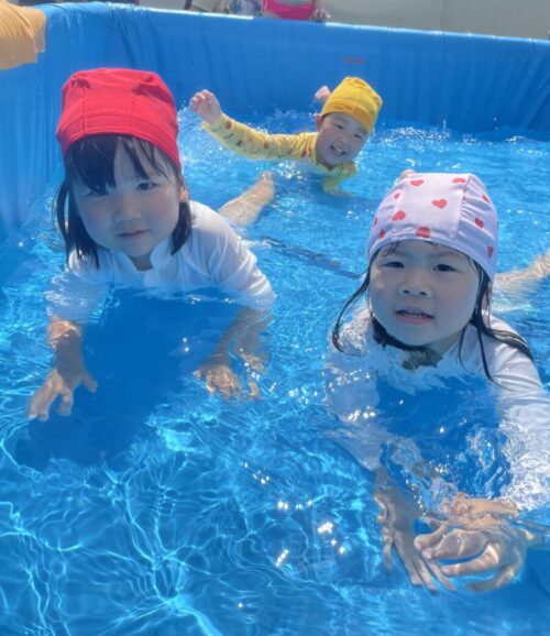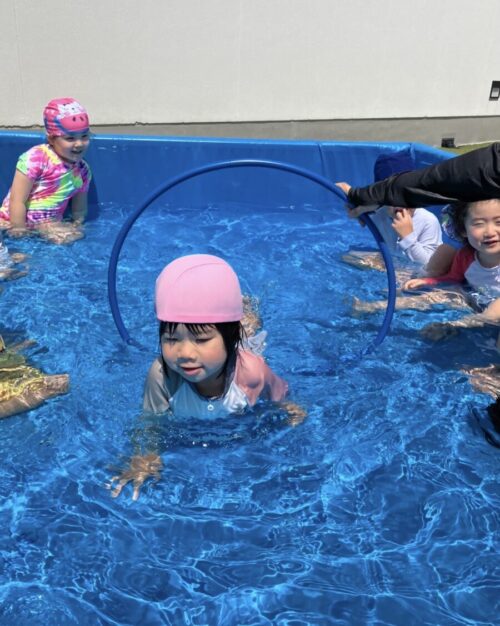 プールではバタ足をしたり、動物になりきったりして楽しく参加しているぱんだ組のお友だち