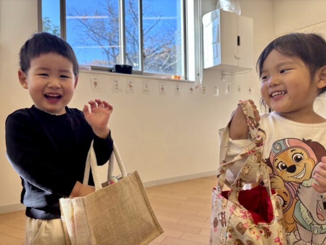今朝、最近ブームのお買い物ごっこをして遊ぶお友達🛍️