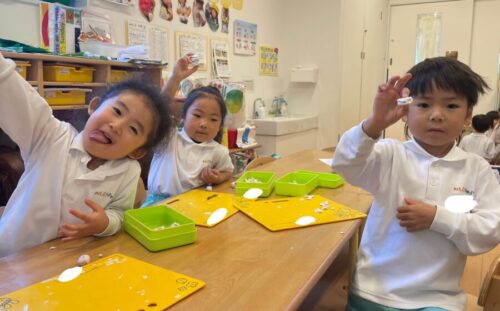 今日はリトミックとフラワーアートがあり大忙しのぱんだ組さん❣️