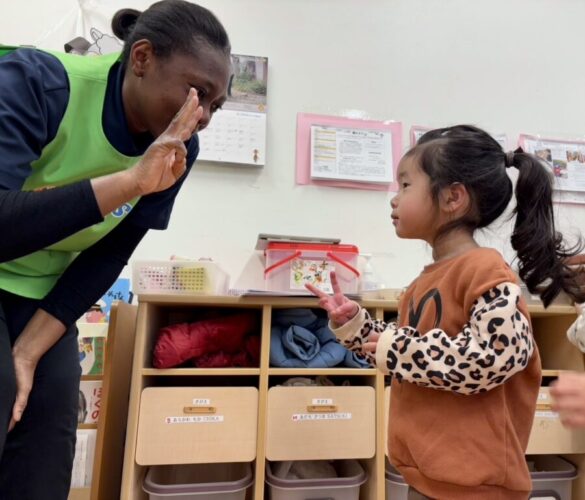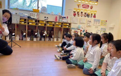 イングリッシュタイムでは「how older you?」と聞かれ「3」とするお友達🥰🥰