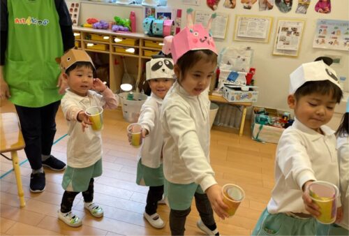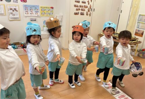 音に合わせてうさぎ🐰やくま🐻、イノシシ🐗になりきって楽しそうなみんなでした![]()