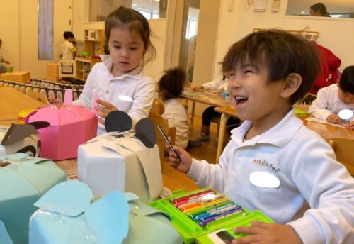 今日も発表会の帽子を作ったりおもちゃで遊ぶことを楽しんでいたお友だち![]()