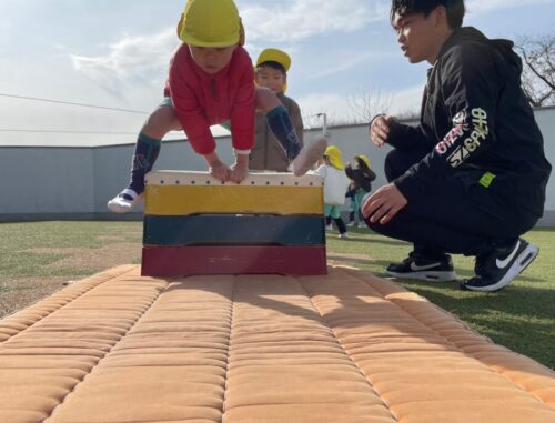今日は跳び箱に挑戦。手をついて座れるかな☺️