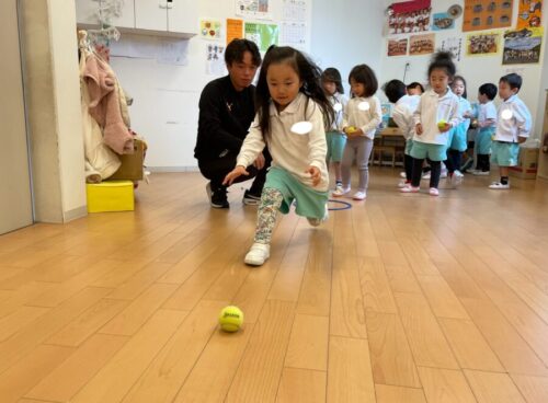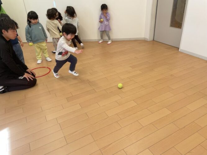講師が転がしたボールを急いで取りに行くことはできるかな🎾
