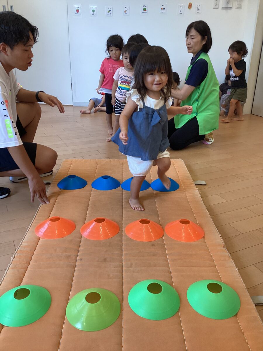 コーンをジャンプして飛び越えられるかな?😄