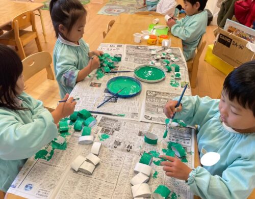 一人ひとり好きな製作を選んでオリジナル作品を作り、部屋がどんどんクリスマス仕様になってきているぱんだ組です🌲