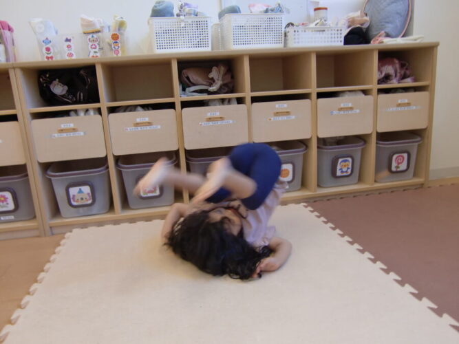 今朝「でんぐり返しできるようになったよ!!」と嬉しそうに教えてくれて、マットでやってくれました👏👏👏