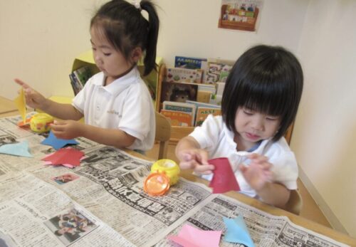 今日は体操教室前に室内遊びや七夕製作をしました🎋