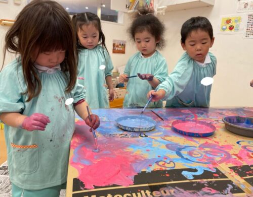 みんなの好きな色を用意して色を塗ったり手形をしたりとアーティスティックな大道具が完成しそうです![]()