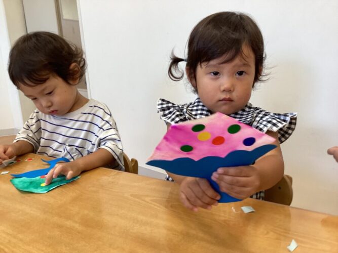 今日は雨だったので先日のにじみ絵製作の続きをしました😄