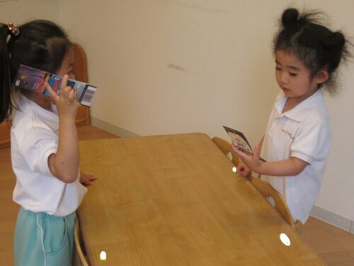 オリジナルの電話を作ってお話を楽しんでいる子もいました