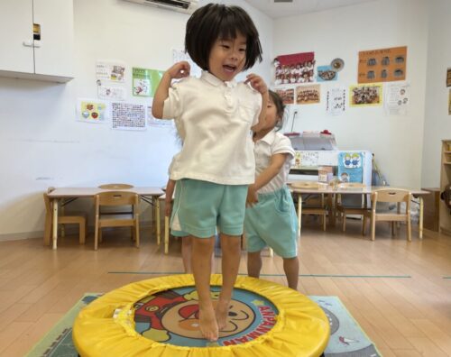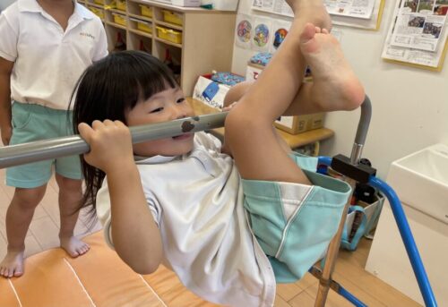 鉄棒に挑戦して体を動かして遊ぶことを楽しんでいたぱんだ組のお友だち