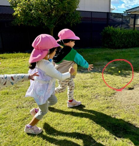 「蝶々だ!!」とモンキチョウを追いかけるお友達🦋