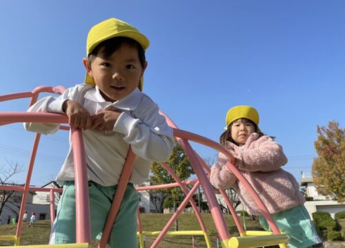 回転遊具もどんどん高いところまで登れるようになり嬉しそうな笑顔![]()