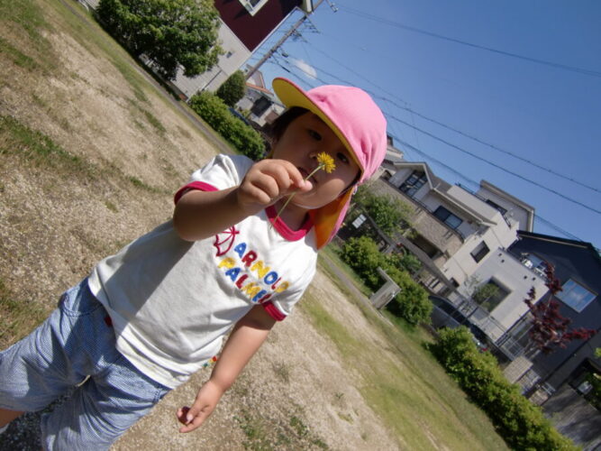 「タンポポあったよ😄」と見せてくれるお友達😊