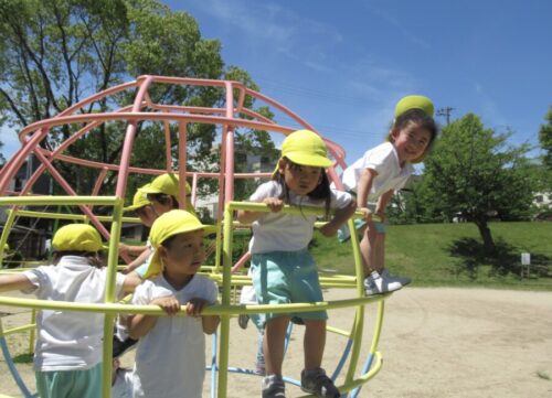 今日も元気いっぱいのぱんだ組さんは早速遊具で遊んでいました