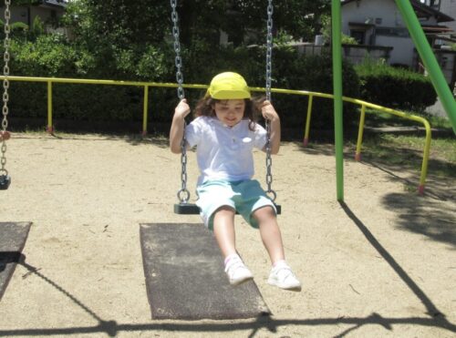 「はや〜い」「目が回る〜」と大笑いをしながら様々なところに登ったり座ったりして楽しそうな可愛らしい姿がありました