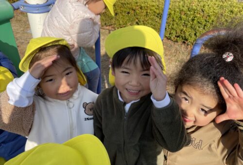 警察ごっこをして「お疲れ様でした🫡」と敬礼をしたり、パトロールをして公園の平和を守る警察のみんな👮
