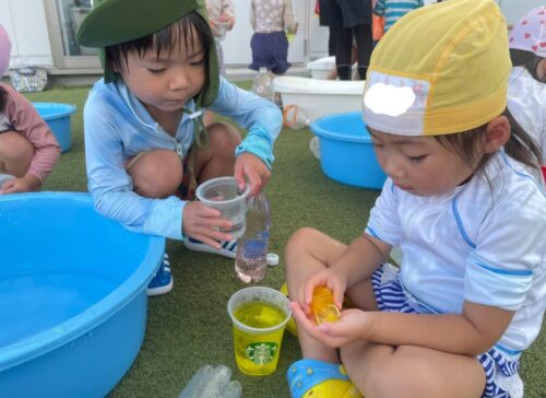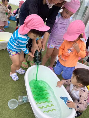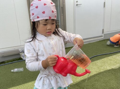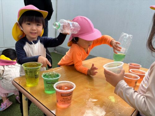 色水を使っておままごとをして遊んでいるお友だちもいましたよ![]()