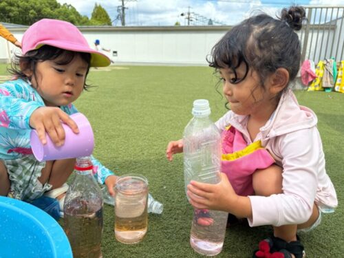 今日もうさぎ組さんと一緒に水遊びをしました![]()