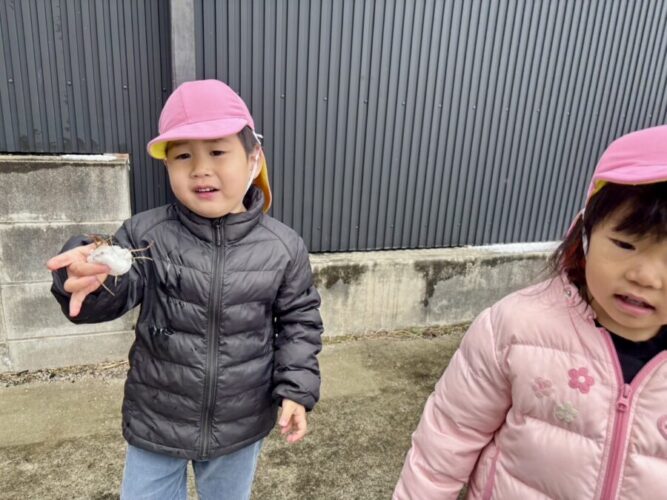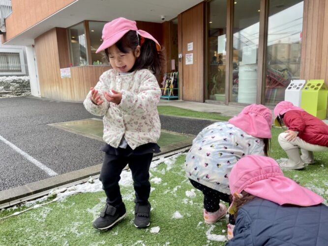 今日は朝から雪が降っていて子どもたちもウキウキな表情で登園してきてくれました![]()