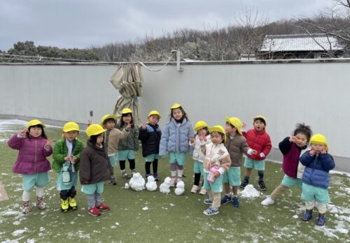 「顔をつけてあげよう」「こっちに雪がいっぱいある!」とそれぞれかわいらしい雪だるまを作っていました![]()