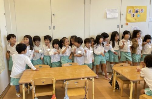 初めて一緒にEnglishをしたり朝の会をしたりいつもとは違う環境に楽しそうな笑顔が見られました![]()