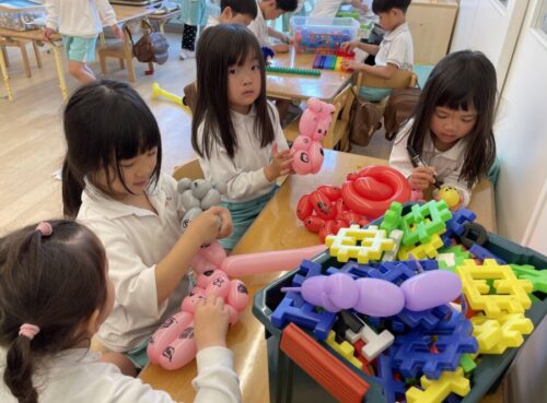 ランチルームでは風船で動物を作ってもらい、お顔を描いてオリジナルな作品が完成してました🌟