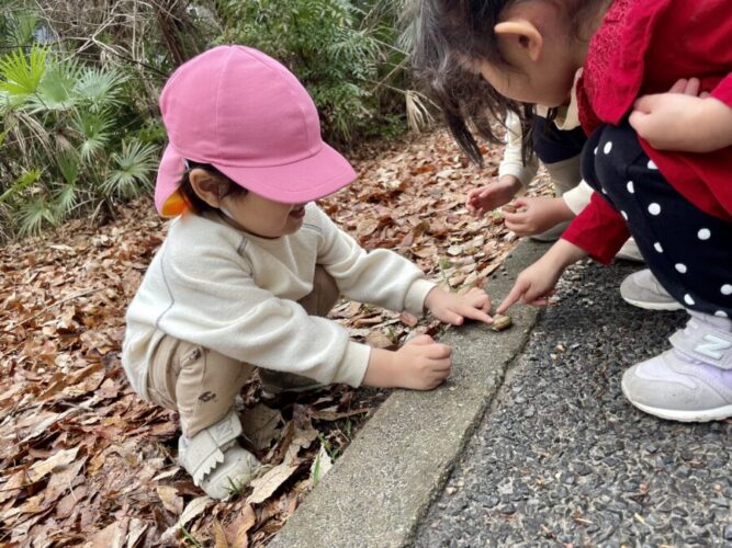 落ち葉の中にカタツムリ発見🐌皆んなで観察して楽しみました👀✨