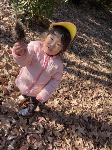 「ブドウみたい」と大きなフウの実を見せてくれたお友達🌲