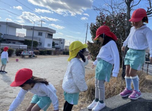 鬼ごっこやかくれんぼを一緒に遊ぶ姿もあり、他クラスとの交流も楽しみながら遊んでいたみんなでしたよ