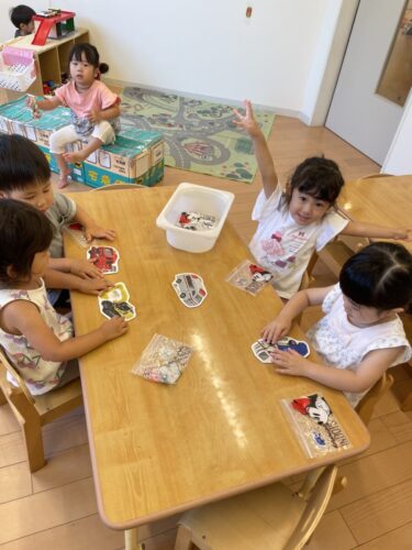 「ゴミ収集車する」など自分の好きな車を選び交代でパズル。使ったら袋に入れて戻している子が多く成長を感じました。🥰