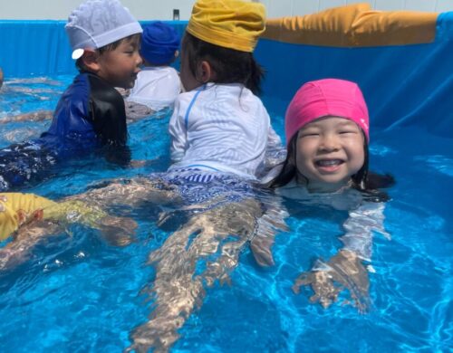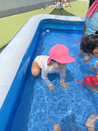 今日も元気いっぱいプール遊びをするぱんだ組のお友だち