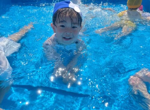 自由に泳ぐ時間ではバタ足をして進んだり潜ってみたりニコニコな笑顔が可愛らしいです