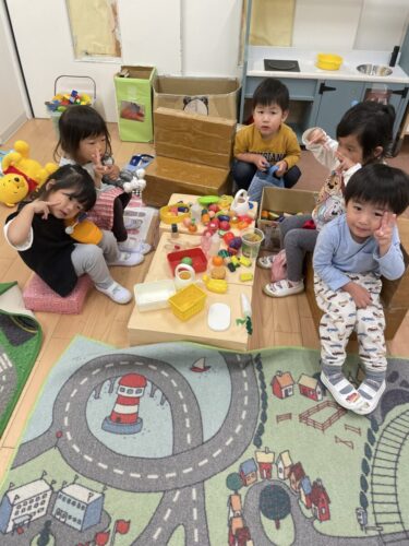 昨日の夕方、、、。ぱんだ組さんの部屋でパーティーをしている子どもたち💗