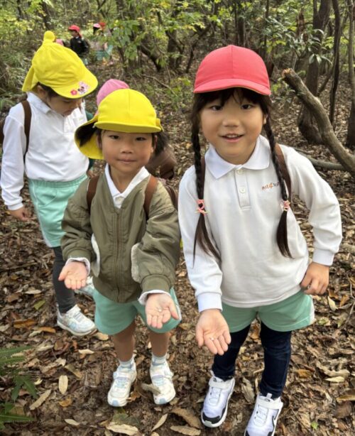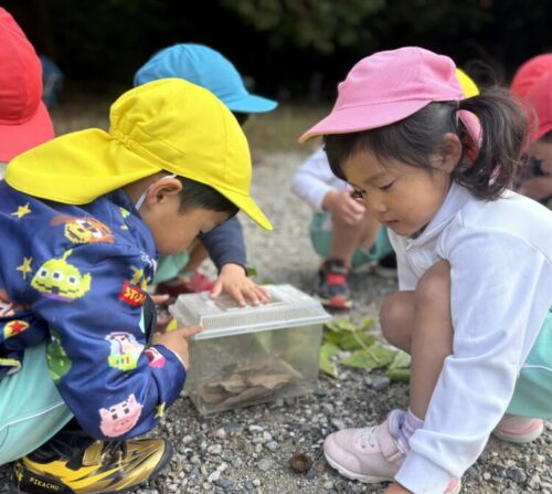 森の広場にはバッタやこうろぎがたくさんいたので、みんなで捕まえて観察していましたよ🦗💕