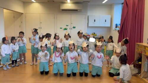 今日は劇遊びをしました❣️前回に比べてセリフや立ち位置を覚えている子が増えていてかっこよかったです😊